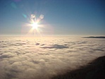 Szerintem ez volt a legszebb szilveszterés idén. Köszönet a H.családnak a szervezésért, a finom hamuban sült fóliás krumpli-szalonna-kolbász-hagyma hamikért, Jevicának is, és Bogee-nak az önfeláldozásért, hogy dolgozott helyettem. Remek helyet választott H.Gábor mind a jelszó- megfejtésének, de főként bázisnak. Ma az egész város ködben volt, ám az állatkerthez érve túljutottunk a felhőkön, és odafenn sütött a nap. A Kis-Tubes kilátónál lévő bázison a csoda várt ránk. A felhők kitöltötték a völgyet, és lassan hintáztak ide-oda, hol a TV tornyot, hol a környező hegyeket takarva el. A nap pedig büszkén ragyogott a felhők felett, ő is élvezte a látványt. Firesanyi finom töpörtyűjét és sok sütit ettünk előételnek, majd a csomagokat faltuk be. A gyerekek szánkóztak közben a domboldalon. A viháncolást folytatva átvonultunk a Tv toronyba, és újfent fotók sokaságát gyártottuk, majd bevágtunk néhány gesztenyepürét, somlóit és kávét, várva a naplementét. Újra felrohantunk a kilátó tetőre, és kattogtattuk a gépeket, csodálva, ahogy a nap a felhők alá száll. Köszönjük a szervezést, a jó társaságot és mindenkinek BÚÉK!