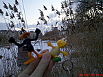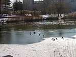 Sütött a nap és sok vadkacsa volt a tó jegén. Izgalmas látvány volt, amint az egyik próbált egy nagyobb kenyérfalaltot bekapni, de az mindig elcsúszott előle. Így alakult ki az a látvány, hogy egy kacsa kétségbeesetten tologat egy kenyérdarabot körbe-körbe a tó jegén... Amikor eljöttem még működött...