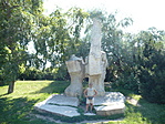 A környezet szép, és érdekes, de ilyenkor hiányolom a régi parkőröket( csősz) mert bár a kutyasétáltatók valóban kímélték a környezetet, de nem tette ezt a fűben elfekvő kb 5, IQminuszos csoport, kannás boraik társaságában. Nekem máshova mutatott a Legend, de azért fellelhető a szobor. Először megijedtem, mert azt hittem, hogy a nagyobb modern szoborról kell megállapítanom, hogy mi az, és hol az öle, de aztán győzött a józan ész, és megpróbáltam GPS nélkül gondolkodni.:-)))