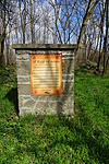 A láda egy fa tövének odvában, kövekkel, avarral álcázva.