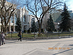 Szombat délelőtti városi ládázás Gyöngyivel. Be kell, hogy valljam nem nagy reménnyel jöttem ehhez a ládához, és úgy érzem igazam volt. Maga a Vígadó nagyon szép, de véleményem szerint a láda nem lesz hosszú életű. Egy hideg téli délelőttön még csak-csak ki lehet halászni a dobozt viszonylag észrevétlenül, de a nyári tömegben egyáltalán nem fog működni a dolog. Ha az ápolt füvön kialakul a kesserösvény, akkor szinte biztos a csésze sorsa. Tudom, hogy van felírt virtuális pont, de szerintem itt egy scele-féle gravír tábla elegánsabb -és bőségesen elegendő- megoldás lett volna.