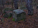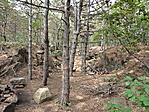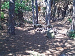 Nagyon tetszettek a kiálló szálkövek. Megtaláltuk az önjelölt 21. századi sámánok hátrahagyott kellékeit. Vicces. Szép sziklás, lukacsos, fenyves környék. És pihe-puha tőlevélpaplan a talpunk alatt.