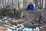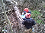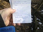 Előbb a zöld turistajelzésről letérve felmentünk a tett színhelyére (bár én már jártam itt korábban, Tobi barátom viszont még nem), megállapítottuk, hogy a hasadék barlangszerű képződmény lehet, bár huzat nem volt, még alaposan felderítettünk mindent, aztán távozásra kényszerített az éhes gyomor, merthogy rövid sétának szántuk, nem hoztunk ebédet. Később kocsival álltunk meg a Hóvirág utca végén, onnan próbálva becserkelni a ládát, sajnos a fentiek okán sikertelenül.