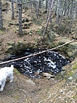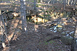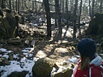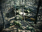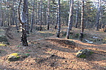 A ládáig nem sok érdekes látható, egy pici sár és egy kicsivel több hó, de gyorsan olvad. A láda gyorsan meglett, ezért továbbsétáltunk a megadott segédpontok irányába. Ez már sokkal látványosabb volt. Hangulatos kis fenyves, vulkáni kőzetbe konglomerált kavicsok és érdekes felszíni formák.