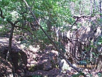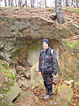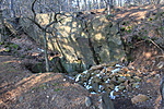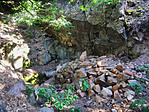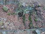 Igen kíváncsi voltam, hogy vajon mennyire rejtélyes a hely. Már régóta szerettem volna eljönni ide, de a dolog nem akart sikerülni. Ám a mai nap már senki és semmi nem tudott visszatartani minket, hogy megnézzük. Én némileg szkeptikus vagyok az ilyenféle helyekkel kapcsolatban, viszont van némi ismeretem a környéken is. Az Ezüst-hegy csúcsánál lévő Tavasz-kunyhónál mi is próbálkoztunk ilyen helyek "kiásásával". Ez itt nem más, mint egy felhagyott kőfejtő. Ennek köszönhetőek a függőleges, megmunkált homokkőfalak. Sem rakott, habarccsal összecementált várfalak, sem egyéb más rejtélyek nincsenek. Ilyen és ehhez hasonló úgynevezett bicskabányákkal tele van tágabb értelemben vett környék. Ahol a felszínen van a Hárshegyi Homokkő Formáció, ott szinte borítékolt egy kisebb-nagyobb kőbánya is köszönhetően az időjárási elemekkel szembeni relatíve nagy ellenállásának és viszonylag könnyű fejtésének, megmunkálhatóságának. Dömével kerestük a com-os dobozt is, de annak nyoma veszett.