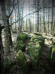 GC1000-GCeger-GCNAKE útvonalon jutottunk ide. Nem tudom, hogy a fáradtság, vagy a naplemente fényei, de nekünk is nagyon különösnek tűnt ez a hely. Tuti, hogy van benne valami. A pálos kolostorromok vannak ilyen fura erdőrészekben, ahol az ember érez valamit, de mit is? A képek is furák lettek, ha rá is játszottam kicsit. Fura hely ez, no.