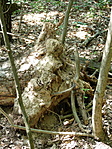 Sajnos több hasonló kidőlt fenyőt találtunk, mire ráleltünk a ládára. A láda elég dzsuvás volt. Sajnos a környék is koszos.