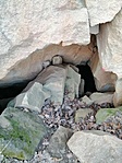 Kis esti séta keretében látogattuk meg a környéket. Érdekes ez a hely, a sziklák. Nehéz eldönteni, hogy természetes vagy van-e benne mesterséges beavatkozás is. A .hu-s és a .com-os doboz is könnyen előkerült. Utána lemásztunk az alagútszerű járatba. Ott most egy hosszúfülű denevér lakik. Ahogy forgatta a fejét, érdekes volt megfigyelni a hatalmas nyuszifül szerű füleit. A végén ránk sötétedett, de rutinosan vittünk fejlámpát. A szarkofág kőbe Alexa bele is feküdt. Köszönjük a rejtést: Alexa, Nóri, Toti