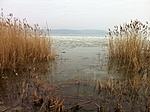 Sokkal nagyobb szívásra készültem. A hó teteje viszonylag kemény, dealul latyak. Az útat és a növénzetet változó vastagságú és állapotú hó borította. Az un kesser ösvényt érzékelni lehetett, de járatlan volt. A láda környékén némi "csicser" hallatszott a nádasból. A Balaton jgben, a túlpart ködben, így csak a közeli látványok "színezték" a színtelen reggelt.