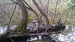Csak a pótjelszót találtuk meg, azt is elég nehezen. A koordinátán átnéztük az összes kidőlt fa törzsét (ld. képek), de nem láttuk a ládát. [Geoládák v3.12.5]