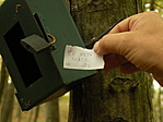 - az első ponton a papír csurom víz, arra az esetre, ha szétmállana, felírtam a koordinátát filccel a filmes dobozka kupakjára belülről. A rejtés leírása elavult: "ágról lógva üregbe, lent pirossal" -> nem lóg ágról, piros sincs, a filmes doboz egy talajközeli odúban van.