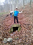 A kör címe lehetne: Utálom a rejtett pontos ládákat! A -en indultunk. Az első pontnál sehol nem találtuk a táblát. Térerő nulla! Keresgélés tovább... semmi. Terv szerint tovább mentünk a Diós-kút felé, ( , -ön). Gondoltuk, majd ott megtaláljuk a táblácskát. Nem jött be! Itt próbáltunk telefonos segítséget kérni, amit ezúton is köszönünk, de nem került elő a koordinátát hordozó tábla. A Lovas-kútnál hamarabb megtaláltuk, mint a forrást. Sikerélmény! Az Oldaltmászó-kútnál is keresgéltünk egy kicsit, de végül Anti előhúzta! Innen erdei utakon jutottunk el a -ig. Menet közben találtunk egy csurgót egy időszakos vízfolyás közepén. Éppen jó időszakban jöttünk, mert egészen bő vízhozama van. (felteszem POI-ba) -on értük el az Érsek tisztást. Itt is átrajzolták a és a jelet, kipróbáltuk, de nem valami jó, visszatértünk a régire, amikor dobtam egy hátast, aminek következtében olyan sáros lettem, hogy majdnem nem ülhettem be az autóba. :-)