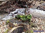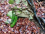 3. pont: Volt egy kis technikai problémánk internet és térerő hiánnyal társulva, így nem láttuk a logokat és nem tudtuk, hogy már április óta nem sikerült senkinek sem megtalálni a 3-as pontot, míg előtte ez senkinek sem okozott gondot. Tudom, Szarajevóba sokszor könnyebb elugrani ládát karbantartani, mint a Börzsönybe, de azért ez a pont megérdemelne egy kis rejtői törődést, mert úgy gyanús, hogy esetleg, valami történt vele. Szóval a 3-as pontnál rengeteg időt elcse...pocsékoltunk, hiába. Aztán a 4-esnél is, de ott legalább hangulatos volt a csobogó patak. Tetszik a szokatlan Oldaltmászó-kút név. A láda nem lett meg, viszont ahány tuskóba benéztem, fát körbejártam, annyi gombát találtam, többnyire újabb és újabb fajtákat. Péter60 nem annyira értékelte, hogy a keresgéslés helyett/mellett sorra ezeket fényképeztem. Kár, hogy nem vittem magammal az igazi fényképezőgépemet, amivel jó minőségű képek születtek volna.