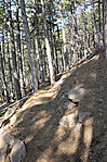 A kettes parkolótól egy jelöletlen keskeny ösvény vezet a piros kőrig , azon: