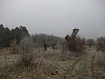 Csavargásunk Roxival. Gyerekkoromban, többször jártunk itt osztálykiránduláson. Szép emlékeim voltak. Tényleg régen volt, mert a fáknak csak megcsonkított törzseit találtuk. Elég nagy volt a köd,kísérteties volt a terület, és nem találtuk a ládát. Már gombolyagot csináltuk a csiganyálból és semmi. A feltételezett rejtekhez újra vissza tértünk, és négykézláb kiszedegettem mindent a rejtekből. Semmi. Megfordultam és 2 lépéssel arrébb belebotlottam egy nylonba zárt kis dobozra. Akkora volt a zúzmara, hogy az zacsit is befedte és nem látszott földön. Visszapakoltam, ezek szerint jó helyre, mert utána megtalálták. Közben olyan sűrű lett a köd, hogy nem láttuk a visszautat a kocsihoz. Jól jött a GPS.