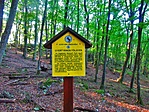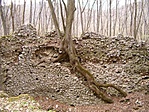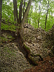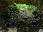 Eltűnődtünk, hogy vajon hogyan hordhatták fel ide az egyes építési anyagokat (a köveken kívül), az eleséget, meg az egyéb, a vár életéhez nélkülözhetetlen "kellékeket"... Lefelé menet aztán a tanösvényt követtük a betonút helyett (ott azért jobb kutyagolni), és megkaptuk a választ: a szekerek vájta árkok jól láthatóak, ahogy Mudmanék is írták. :) Valószínűleg valaha volt a tanösvénynek egy táblája is erről, amelynek ma már csak az oszlopa van meg. :(