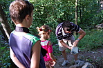 Nos, felfelé természetesen a nehezebb, lefelé a "sétálós" útvonalat választottuk. Az odaút mentén a mohos sziklák szalamandra kereső expedícióra csábítottak. Kifejlett példányokat nem, lárvát viszont annál többet találtunk. Irtó aranyosak: ha az ember kézbeveszi, előbb csak tekereg, aztán olyan brékelésbe kezd az ellenség megtévesztésére, hogy ihaj! A szalamandrák valószínűleg nálunk jobban élvezték a 120%-os páratartalmat...