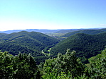 A kilátás fantasztikus. Nagyon tetszett a tömött erdő innen felülről szemlélve. A rejtés is jó volt. Lefelé menet látszik a sziklába vésődött szekérnyom. Talán ez tetszett a legjobban. Mennyiszer el kellett itt menni szekérrel, hogy ilyen mély nyomot hagyjanak a sziklában, ami ennyi idő elteltével is tökéletesen látszik.