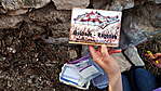Nagyon szép környéken van a láda. Mindenkinek érdemes megnézni azt a helyet és nagyon érdekes volt látni a sok falmaradványt, ami nagy kiterjedésű területen fekszik a dombon egy fennsíkon. Lefelé izgalmas utunk volt mert egy nagyon meredek oldalt választottunk ki, ami homlok egyenest levisz a domb tövébe. Ezt is érdemes kipróbálni mert vicces ahogy a domboldalban lehet szó szerint lecsúszni a földön!