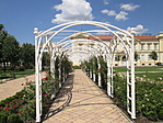 Gyönyörű szép a park, ám a rózsalugas kicsit gondozatlan volt. A gallyakat nekünk kellett behajtani, hogy el lehessen menni a lugas alatt.