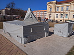 Téli álmát alussza az emlékmű, be van csomagolva, így a jeszó nem látható.