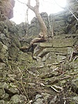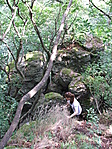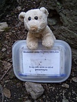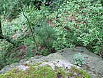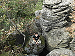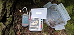 Természetesen először egy korai sziklán másztam le, így volt egy bónusz-utam is... A koordináta jó, az ösvény végéig kell menni :) A láda eléggé be volt tolva, bottal tudtam csak kintebb piszkálni, de a következő kincskeresőnek nem lesz ilyen nehéz dolga :)