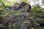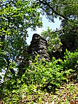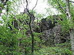 Becsülettel megküzdöttünk érte. A ládatulajdonságok között több beállítás félrevezető. A bazaltsziklák maximum földtörténeti nevezetességgel bírnak, történelmivel nem igazán és a kitett száblák szerint nem bizonyítható, hogy valaha is állt volna itt bármilyen erődítés. A GPS-t eléggé zavarta a sok szikla. A cipőknek kellő kihívás ez a mászóka és a ruhákat is megviselheti a leereszkedés a ládához. Kerékpárral pedig biztos nem lehet látótávolságig menni.