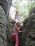 a láda megszerzéséhez sziklát kell mászni (gyerekkel nyakban kizárt)