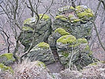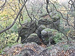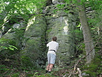 Irány Kapolcs ahol mindját belevetettük magunkat a rengetegbe, és a Királykőig meg sem álltunk. Alkalmaztam a múlt hét végén már a bakonybéli kálvárián és az Ördög-liknál betanult sziklatapogatós módszert. Ennek meg is lett a gyümölcse. 8)) Kb 30 percet kerestem.