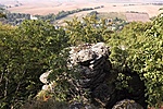 Kapolcsról rohamoztuk meg a kilátópontot. Kicselezve a faluvégi kutyákat, először egy gombászó helyi lakossal, majd kirándulókkal is találkoztunk, pedig hétköznap délután nem gondoltuk, hogy más is van az erdőben. A kilátás a kőről csodálatos, a rejtés meg egyenesen szenzációs. AltSanyi végre kiélhette sziklamászó vágyát, és fél lábon egyensúlyozva logolt, nem kis kockázatot vállalva, dehát lovagi kötelességünk minél több és nagyobb veszély vállalása. Köszönjük, hogy erre járhattunk, nagy élmény volt minden.
