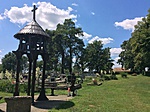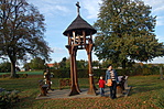 A parkolóból a láda irányában elindulva áthaladunk a falu temetőjén, amelyből messziről kitűnik a gyönyörűen faragott harangláb