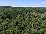 Végre egy olyan kilátó, aminek értelme van! Az építmény is szép, fentről pedig tényleg messze látni: alattam a szép hársak lombja, a Mecsek csúcsai tisztán látszanak, északnyugatra felismerhető a Badacsony - Gulács - Tóti-hegy hármasa, délen pedig a Papuk hosszú gerince.