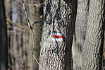 A parkolótól piros sávon menj, majd a tuhun jelzett erdészeti utakat is használd a csúcs kerüléshez.