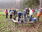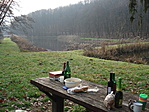 Gyors logolás után forralt bor, szigelhalmi pálinka és a sütemények sokáságát megkóstolása körbe jártuk a tavat a különféle feladatokat megoldó fiatal gyerkőcök között sétálva. Ismerkedés és rövid beszélgetés után elbúcsúztunk a kaposváriaktól és vissza indúltúnk a patakba szakadt hídon át Kaposvárra, hogy a gcxm13 ládát is felkeressük.