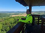 Ez volt az első állomás. Egy rövidebb túrával akartuk megkeresni a kilátót, és a megyei magassági pontot (GCMM20). A megadott parkolóból kaptattunk fel a kilátóhoz. Jó meredek volt, de azért simán felhágtunk a tetejére. A láda megtalálása már nem volt ennyire sima. Viszonylag sokat kutakodtunk az aljnövényzetben, mire végre előkerült. GPS picit arrébb kalauzolt. Aztán felmásztunk a kilátóba is körbenézni. Klassz innen a kilátás!