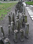 5x9x14 cm méretű doboz, az épület déli sarkánál egy fenyőfa tövében.