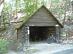 Meghirdetett túra volt, így ha esik, ha fúj, menni kellett. A vár-parkolónál hezitáltunk, hogy mi legyen, mert dörgött-villámlott. Folytattuk kis esőben, a nagy zuhé éppen a József-forrás alatti kis ház teraszán kapott el bennünket. Ebéd közben nem zavart:) El is állt a tovább indulásra, de a Palóczki-rétre vezető kaptatónál újból rákezdett. A bicókat kisebb patakmederben toltuk fel. Mire a Pap-rétre értünk elállt megint, a lefelé guruláskor láttuk, hogy arrafelé alig esett.