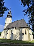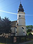 Meglepő, hogy a torony mennyire aránytalanul nagy az öreg templomhoz képest. Aránytalan, barokk, de mégis szép az egész. (Azért az itteni jellegzetes fatornyokat jobban kedvelem.)
