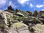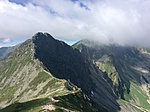 A 2. napon felfelé inkább a Foltos-völgyben (Látaná dolina) mentünk fel a hágóig, hogy ne ugyanazon a műúton kelljen oda-vissza kutyagolni. Szép útvonal, tudom ajánlani. A gerincen jó erős szél fújt, de az ég kristálytiszta volt. A Rohács csipkés sziklái gyönyörűek.