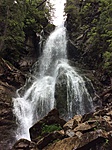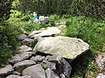 Innen a kéken ereszkedünk le a Smutné-völgybe, majd a kiágazó zöldön érjük el a tavakat, majd a vízesést.