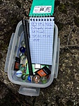 A forrás jelű szikla mögött az úttól 10 m-re a legnagyobb fenyőfa bocskorában rejtőzik a 12x8x5 cm-es doboz.