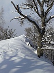 A környék ládáit már régebben megszereztük. Most az Ilona-völgyben parkoltunk. Onnan a sárgán Rózsaszállás vadászházig, majd fel a ládáig. 500 m magasság felett hó volt, fenn a ládánál 40-50 cm havat tapostunk kb 13 fokban, kabát nélkül, ragyogó napsütésben. Hatalmas élmény volt. A ládához szó szerint csúszva érkeztünk :)