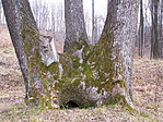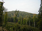 felől, de letértünk róla az irtás kezdeténél É felé, mert a tuhu meg a papíros térkép is jelzett valami utacskát arra. Tényleg volt is ott egy út, kicsit kanyargósan ugyan de egész közel vitt a célhoz, az utolsó száz méteren kellett csak kvázi toronyiránt átvágni a bozótoson, de ott is voltak csapások. Közepesen nehéz terep.