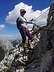 A Wasserfallweg nagyon látványos, láncos-létrás út, tetszett a vonalvezetése. Az ember lent csak találgatja, hol vezetik fel a szinte függőleges sziklafalon. A Hesshütténél fújtunk egyet, töltöttünk vizet (szerencse, hogy itt van bővizű forrás, mert a felső részen mind el is fogyott), majd nekivágtunk a csúcsra vezető útnak.