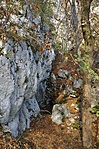 A hegytetőről megállapítottam, hogy jártam már itt egyszer, a Szurdok nevű ládánál. De a barlangokat akkor nem kerestem. Viszont közös vonás, hogy akkor és most is nagyon sokat kellett keresgélnem. A GPS szinte használhatatlan volt, a leírásban szereplő kidőlt fát (ebből van vagy 100), meg a kőkupacot kerestem. Végül siker, irány a 3. pont!