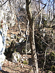 A második pontot 2004.03.21.-én teljesítettük. A völgyet már ismerve az N47° 33.654; E18° 56.218 pontban parkoltunk. Innen csak nagyon kevés mászás, inkább kapaszkodás árán közelítettük meg a rejtekhelyet, amit viszont gyorsan megtaláltunk.