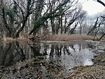 Bevallom, hogy újpalotai gyerekként a patak ezen részén nem sűrűn jártam. Nem tudom, hogy miért alakult így. Pár alkalommal biztos voltam itt, csak nem emlékszem rá. Sokkal inkább a Kiserdő, meg a szánkódomb környékén mászkáltunk. Pedig tényleg érdekes ez a vizenyős rész. Költési időszakban biztosan mozgalmasabb, de most sem volt unalmas. Meg, ha már lesznek virágok (nőszirmok), az még többet dob majd rajta. Én a laktanya és a temető közti utcából érkeztem és gond nélkül idejutottam. Amikor pár éve utoljára jártam erre, ugyanitt keltem át és ugyanígy egy bevásárlókocsi volt a vízbe borítva. A láda gyorsan előkerült a helyéről.