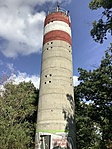 Innen csak egy kis séta volt a S3-on a torony. Megkerestük a ládát, logoltunk, majd szemügyre vettük a betoncsövet. Az ajtót kinyitva kísérteties hang hallatszott, beletelt egy másodpercbe, mire felfogtam, hogy az egyszerre elrepülő galambok szárnysuhogását erősítette fel a cső ilyen különösen. Nem volt kérdés, hogy felmegyek megcsodálni a túra legszebb panorámáját, holmi szárnyasok engem nem tántorítanak el ettől, de Dóri kijelentette, hogy ő aztán fel nem jön, az biztos!