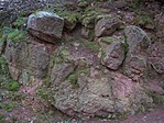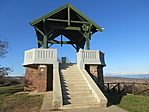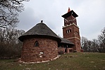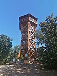 A K3, Z3 jelzésen felmásztunk a Somlyó-hegyi kilátóba, kiláttunk, majd haladtunk tovább a K3-on lefelé. Alsóörsön átváltottunk a K-re, rövid gyaloglás után megnéztük a térképen "szabadtéri színpad" néven szereplő vörös köves objektumot, aminek most valami hangzatos neve lett, de nem jegyeztem meg. A felső ösvényen átvágtunk a felhagyott vöröskő bányába, ahonnan a továbbjutás először akadályba ütközött: egy "Vigyázat! Íjászat!" tábla zárta el az ösvényt. Mivel nem akartunk még egy-két nyilat is cipelni magunkban, ezért kerültünk - de íjászatnak nyomát se láttuk. Ez egy otthagyott felirat lehet - szép, korrekt hozzáállás... Végül egy másik ösvényen visszajutottunk a K-re, amin egészen az S3 kereszteződésig másztunk felfelé a szurdokban. Ez a szakasz volt a legnehezebb a túra során. A 4. ponton a Csere-hegyi kilátónál kis házikó várt padokkal, asztallal, ott kicsit kifújtuk magunkat, mielőtt ebbe a toronyba is felmásztunk volna. Klassz a kilátás innen is! Kilátás után a házikóban megebédeltünk, közben gyorsan meglett a jelszó és a következő koo is. Visszafelé közös megegyezéssel (lesz, ami lesz!) nekivágtunk a hegyoldalnak lefelé toronyiránt, hogy rövidítsünk. Árkon-bokron át végül leértünk a K-re, amin aztán visszasétáltunk Alsóörsre, majd a parkolóban várakozó Geopelhez.