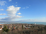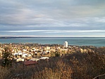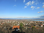 Nekiindultam a létráknak. Az, hogy "a galambok is belakták mostanában" egy finom megfogalmazás. Néhol 30cm magasan áll a guano, és hát a létra fokai sem patyolattiszták, na. De mind közül a legundorítóbb a szag volt. Tüzetesen nem néztem körül, de jó pár dög is lehet ott. Láttam épnek látszó tojásokat és két-két pelyhes fiókát is a vaslemezre rakott, hevenyészett "fészekben" rettegve lapulni. Hősies anyjuk a veszély első jelére magukra hagyta őket. Természetesen nem háborgattam őket. Felérve a cső tetejére elmúlt a dögszag, maradt a valóban gyönyörű kilátás. Mivel az eddig bejártak közül ez van a legmagasabban, ezért nyilván innen a legszebb a panoráma. Ezt lekiabáltam Dórinak is, aki ettől (?) felbátorodott, látván, hogy életben maradtam :-) és mégis feljött. Kicsit remegett ugyan a lába eleinte, de aztán együtt nézegettük az ismerős vidéket odaföntről. Lemásztunk, visszasétáltunk az autóhoz és hazaautóztunk Füredre - ennyi mára elég volt.